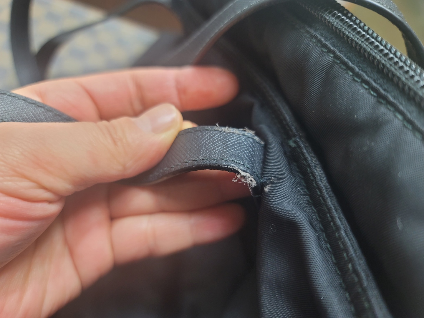 프라다가방수선 전 끈손상 모습