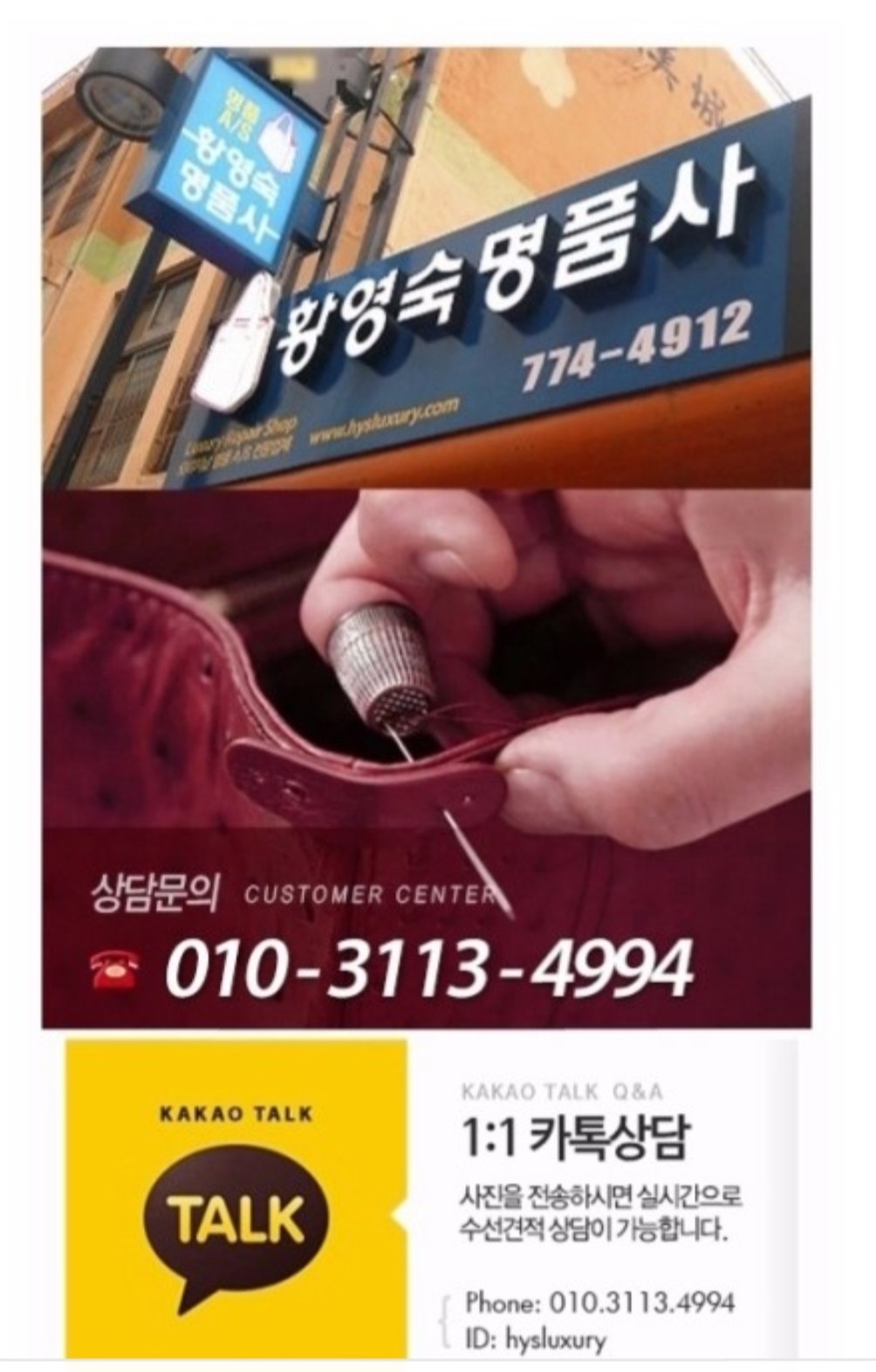 명품가방수선전 사진을 카톡으로 전송하시면 실시간상담이가능합니다